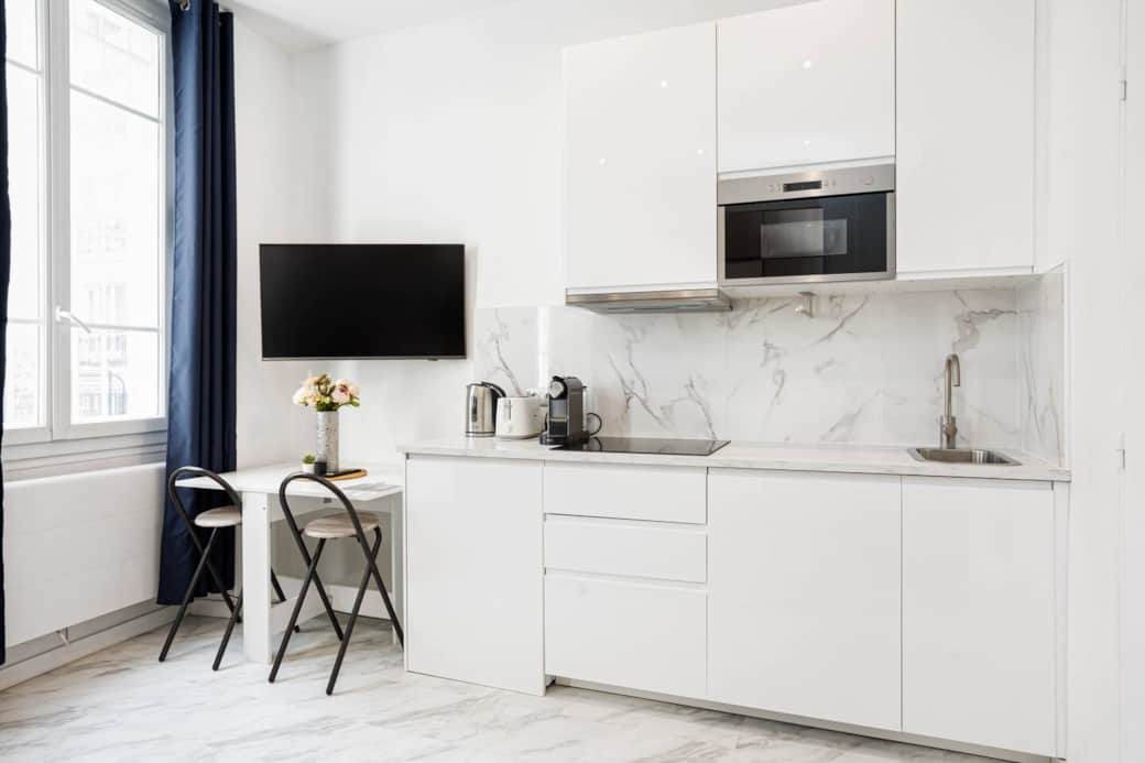 Modern 20 m² studio located on the ground floor, near the Roland Garros Stadium. The apartment features a double bed that folds into a mirrored wardrobe, a compact kitchenette equipped with a microwave, mini fridge, stovetop, and cooking essentials, as well as a bathroom with a shower and a small dining area with a table for two. A TV and all basic amenities are provided for a comfortable stay. Dear guests, our team is here to support you and resolve your concerns every day from 10am to 6pm (Central European Time). Located in the elegant 16th arrondissement, this studio sits on Boulevard Exelmans, a quiet and safe residential area just a few minutes from Roland Garros Stadium and Bois de Boulogne. You’ll find cafés, bakeries, restaurants, and supermarkets within walking distance. The Exelmans metro station is only a few steps away (9 minutes walk), providing easy access to all major Paris attractions.