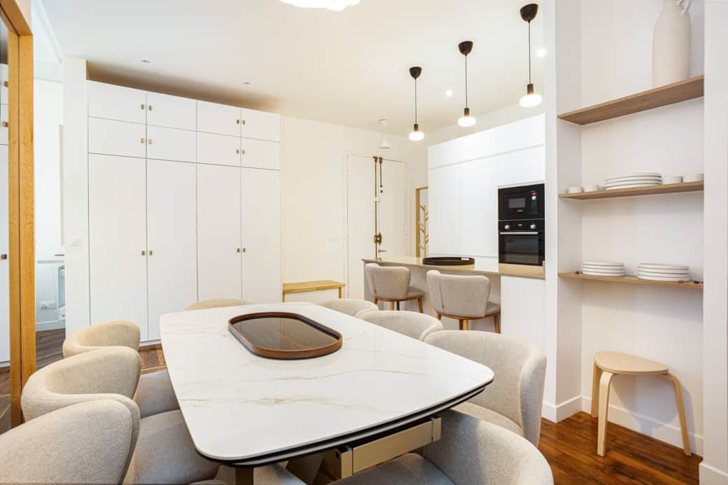 Comfortable and stylish apartment fully equipped with everything you need, just steps away from the Arc de Triomphe. Welcome to our bright and spacious apartment on the 2nd floor of a classic Parisian building with an elevator. Overlooking a quiet courtyard, the flat offers a peaceful retreat in the city. It features two bedrooms with double beds (160x200 cm), a large open-plan kitchen with a dining area that seats eight, and a cozy living room with a sofa bed (160x200 cm). The bathroom includes a walk-in shower and a washing machine. The apartment is fully equipped with everything you need for a comfortable and relaxed stay — perfect for families or groups of friends. Dear guests, our team is here to support you and resolve your concerns every day from 10am to 6pm (Central European Time). The apartment is located in the prestigious 8th arrondissement of Paris, just minutes from the Arc de Triomphe. Guests will enjoy close proximity to numerous Parisian cafés and restaurants, famous architectural landmarks, as well as shops of the most renowned brands on the Champs-Élysées. The location offers excellent transport connections, with easy access to metro and bus stops. Metro : - Charles de Gaulle – Étoile : lines 1, 2, 6 (1 min walk) - Ternes : line 2 (4 min walk) - George V : line 1 (8 min walk) Train : - Charles de Gaulle – Étoile : RER A (1 min walk) Bus stops : - Charles de Gaulle - Étoile - Wagram : lines 30, 31 (1 min walk)